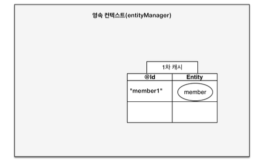 영속성 컨텍스트의 1차 캐시는 HashMap 구조이다. 1차 캐시에 관한 그림을 살펴보면 엔티티의 식별자를 Key로 사용한다고 알려져있다.
