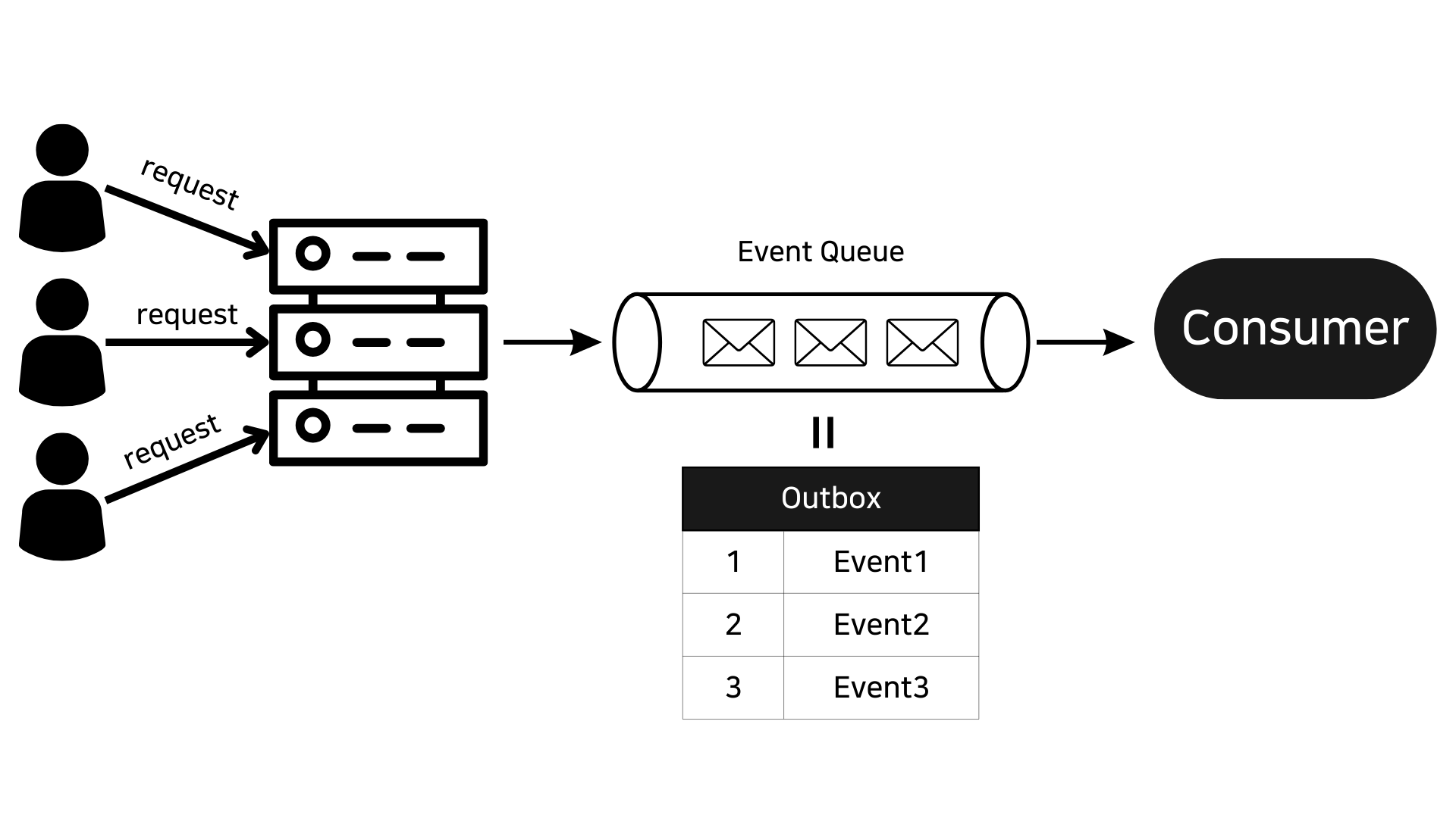 또한, 향후 외부 메시지 큐(RabbitMQ, Kafka 등)를 도입할 경우에도 Outbox 테이블에 저장된 이벤트를 그대로 메시지 중개인으로 발행할 수 있으므로, 구조 변경 없이 유연한 확장이 가능하다. 이를 통해 초기에는 간결한 구조로 운영하고, 시스템 규모가 커짐에 따라 확장성을 고려한 설계를 적용할 수 있다.
