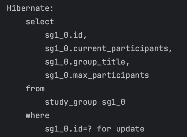 예를 들어, 최대 입장 가능한 인원이 10명이라고 가정하고 현재 입장한 인원이 9명이라고 생각해 보자. 동시에 10건 이상의 입장 요청이 들어오면, 각 요청은 현재 인원이 9명인 Study Group 데이터를 읽어 들이게 된다. 따라서, 모든 요청에 대한 입장이 가능하게 되고, 이로 인해 참여자가 최대 정원을 초과할 수 있는 동시성 문제가 발생할 수 있다.